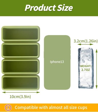 - Versatile Usage: Our silicone ice cube molds make baking, freezing, and storing both easy and convenient. The tray can also be used to freeze other liquids such as juices, coffee.Our ice block mold is perfect for freezing soups, sauces, broths, baby food