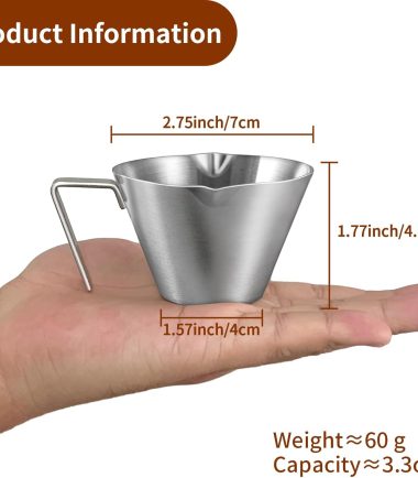 - Ergonomic Handle for Easy Grip & Anti-Scalding:The stainless steel measuring cup has an ergonomic handle for a secure,comfortable grip.It’s safe for hot espresso or freshly whipped milk,ensuring your hands won’t get burned while you enjoy your coffee