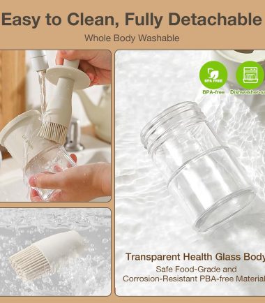 - 【Easy to Use & Clean】: Fill oil through the wide mouth of oil bottle brush, brush oil on the pan or grilling food. All parts of oil bottle with brush can be disassembled and cleaned separately. It can be easily cleaned by hand & dishwasher