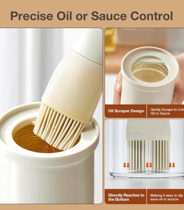 - 【Precise Oil Control】: The kitchen oil dispenser with cooking brush for oil and sauce’s oil scraper design helps to avoid waste and control the amount of oil or sauce, while also ensuring the cleanliness of the table and cooking surfaces