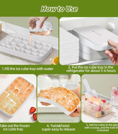- 【Prevent spills & prevent odors】: The ice cube tray with lid and bin has a new airtight lid design to cover the ice tray tightly. And the lid is perfectly sealed to prevent overflow, prevent ice cubes from sticking and prevent odor
