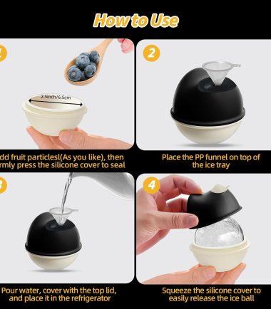 - 【Easy Fill & Release】: The sphere ice cube mold separates in the middle, allowing you to add ingredients like vanilla, lemon, or mint. Made from soft silicone, just squeeze the bottom to effortlessly release the ice ball after removing it from the freezer